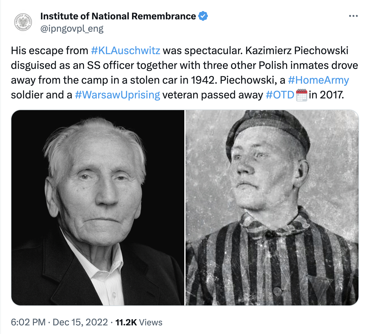 Kazimierz Piechowski was a Polish scout who made a daring escape from the Nazi German concentration camp of Auschwitz during WWII.