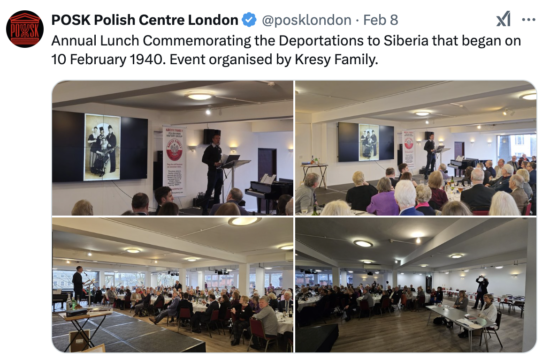 This weekend it was my privilege to be the guest speaker at the Polish Social and Cultural Association (POSK) in Hammersmith, London. The aim of the event is to raise awareness and commemorate a tragedy from the Second World War: the deportation of more than one million Polish people to the Soviet Union. This February marks the 85th anniversary of the start of this event.