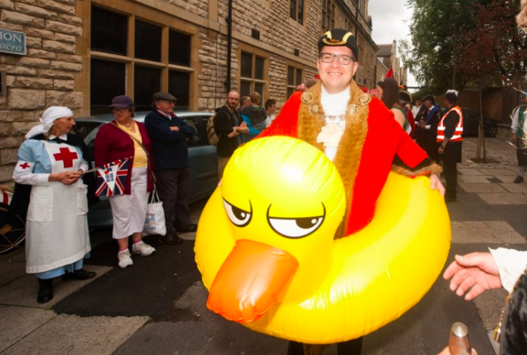I was curious about my transport. When it arrived just before 11am – I’ve seen a giant duck. I’ve never expected that sort of „vehicle”. Everybody really enjoyed the grumpy duck, especially the children. I’ve proclaimed myself as a Duck Mayor of Barton.