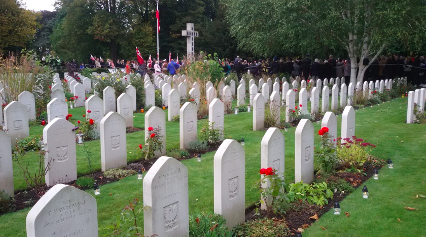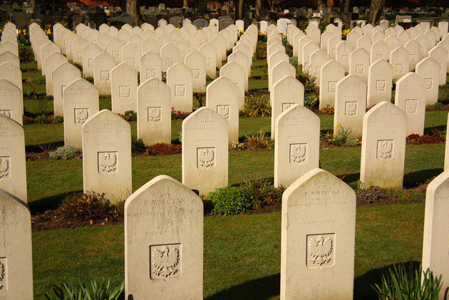 During the Second World War there were a number of R.A.F. stations within a few miles of Newark, from many of which operated squadrons of the Polish Air Force. A special plot was set aside in Newark Cemetery for R.A.F. burials and this is now the war graves plot, where all but ten of the 90 Commonwealth and all of the 397 Polish burials were made. The cemetery also contains 49 scattered burials of the First World War. A memorial cross to the Polish airmen buried here was erected in the plot and was unveiled in 1941 by President Raczkiewicz, ex-President of the Polish Republic and head of the war time Polish Government in London, supported by General Sikorski, Commander-in-Chief of the Polish Forces and war time Polish Prime Minister. When both men subsequently died, General Sikorski in 1943 and President Raczkiewicz in 1947, they were buried at the foot of the Polish Memorial. General Sikorski’s remains were returned to Poland in 1993, but there is still a memorial to him at Newark.