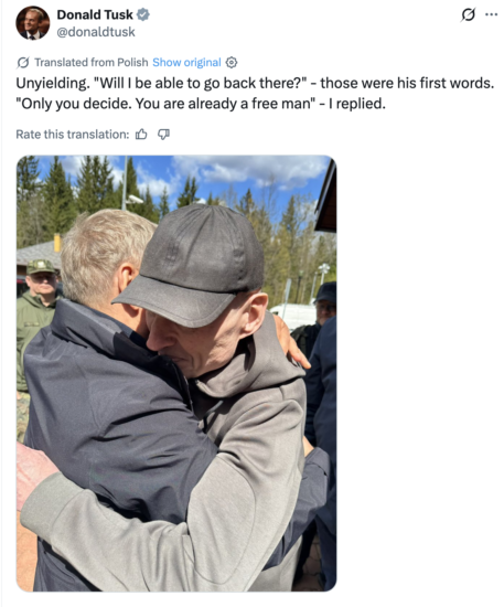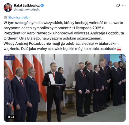 President Nawrocki has since invited Poczobut to receive Poland’s highest state decoration, the Order of the White Eagle, which had previously been awarded to him.