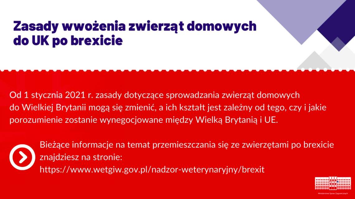 Informacje dot. tematu przewozu oraz importu/eksportu zwierząt w kontekście brexitu dostępne są na stronie Głównego Inspektoratu Weterynaryjnego.