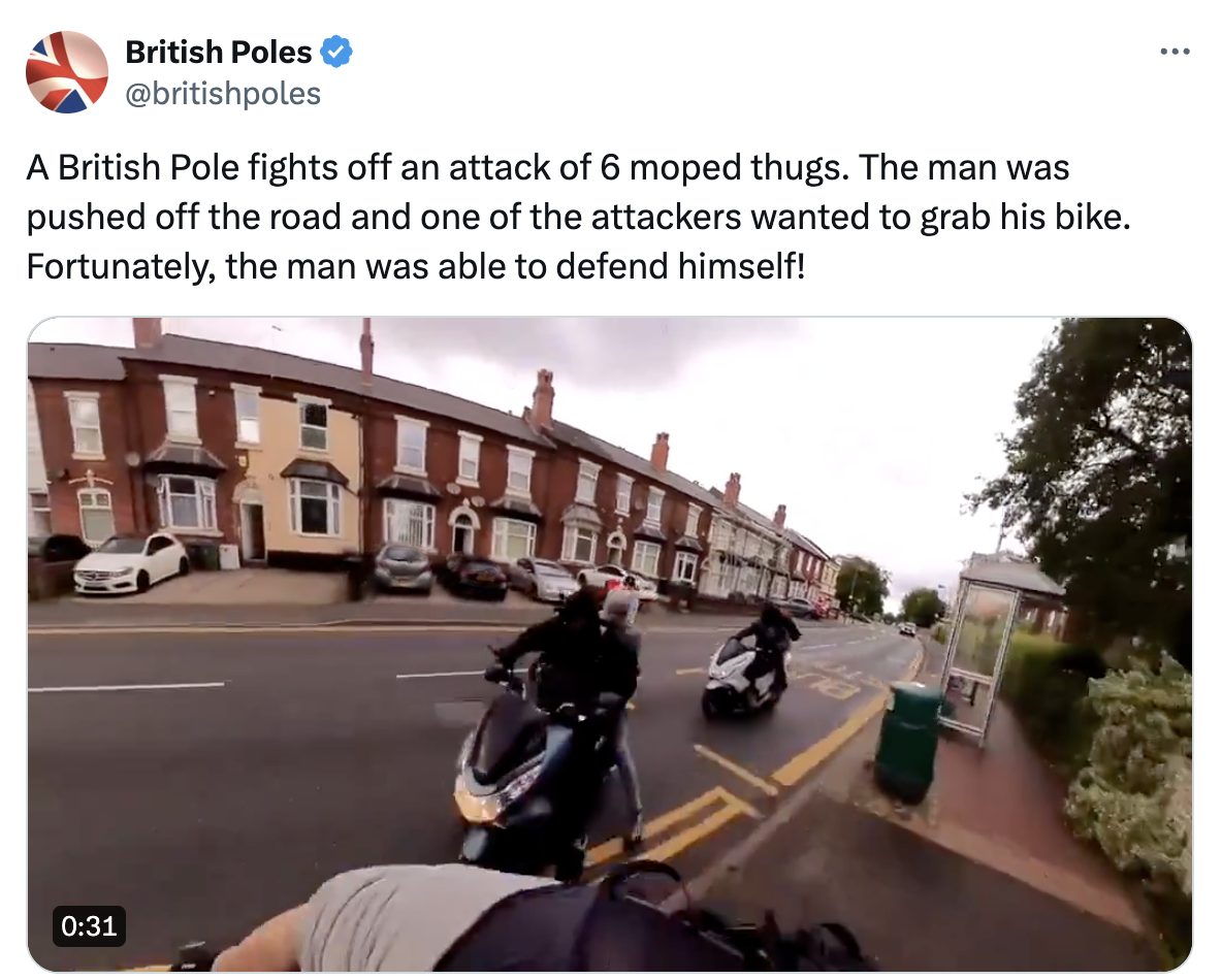 A man was attacked by a gang of 6 thugs on motorcycles. He was pushed off the road and one of the attackers, armed with what looked to be a hammer, wanted to steal his bike. Fortunately, the man was able to use pepper spray to scare off the thieves.