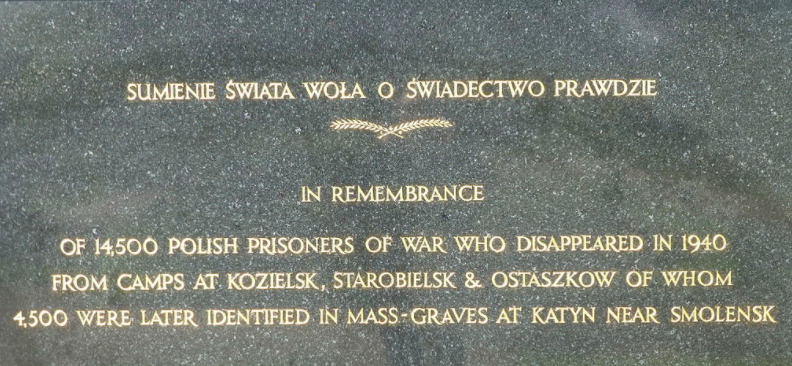 „As finally admitted in April 1990 by the U.S.S.R. after 50 years of shameful denial of the truth” (Jak ostatecznie przyznano w kwietniu 1990 roku przez ZSRR po 50 latach haniebnego zaprzeczania prawdzie – tłum red.).