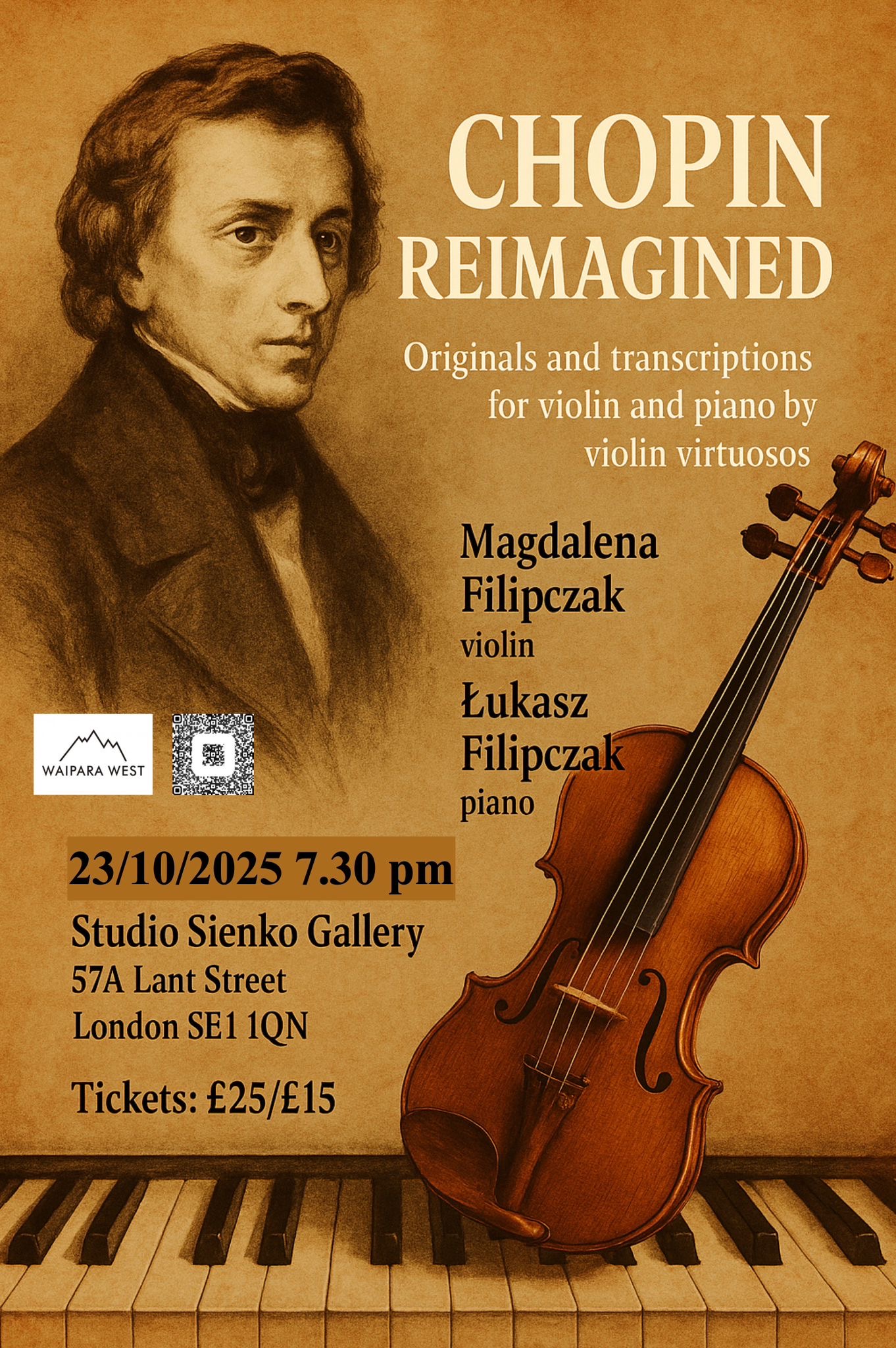 Magdalena Filipczak has been praised as “a musical chameleon” (THE ARTS DESK). Her Carnegie Hall debut was hailed by the New York Concert Review as “a concert not to be forgotten… vehicle of violin wizardry.” She has performed on prestigious stages across Europe and the Americas, including Wigmore Hall and the Concertgebouw in Amsterdam. As a prizewinner of numerous international violin competitions, she received Młoda Polska scholarship from the Polish Minister of Culture for her artistic achievements. The Strad called her debut CD Essence of Violin “captivating.” Upcoming recordings with Peter Frankl and her brother Łukasz promise to be important additions to her discography. Magdalena can also be heard on BBC TV and Radio in Thief at the British Museum, as well as on recordings of Gregson’s music for Deutsche Grammophon and others. She graduated from the Guildhall School of Music and Drama, where she studied with Krzysztof Śmietana, and from the Perlman Music Program of Itzhak Perlman. In 2025 Magdalena earned a Doctor of Musical Arts (DMA) degree from The Graduate Center in New York. With support from Beare’s International Violin Society, she has performed on exceptional instruments, including Stradivari and Amati violins.