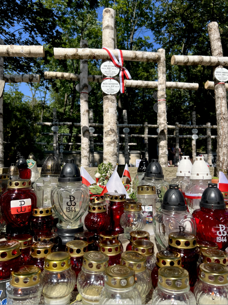 Warsaw lives the memory of the Warsaw Uprising long before 1 August. This is best seen by visiting the memorials dedicated to the martyrdom of Polish heroes. There are, unfortunately, an infinite number of these places in Warsaw. Far too many. Candles are lit at every monument and memorial site, passers-by lay flowers and scouts stand guard. City buses, trams and taxis drive around with small Polish flags flying in the wind, also many private drivers choose to show their patriotism in the same way. The Polish TV broadcasts films such as „Kanał„, „Kolumbowie„, „Powstanie Warszawskie” and „Miasto 44„. Young people proudly parade in T-shirts with the Anchor – a symbol of the Home Army and the Uprising. Polish flags are everywhere. One often sees and hears foreigners coming to the Polish capital to learn more about our painful history.