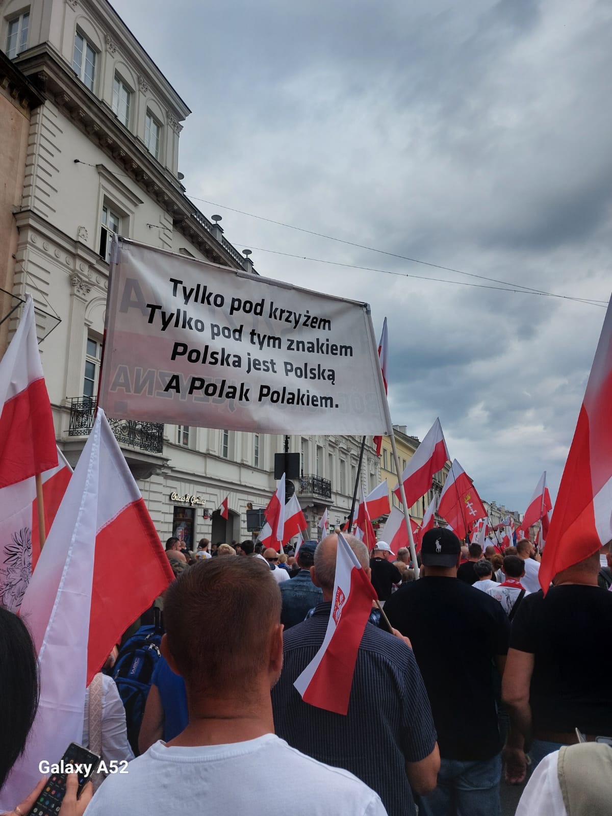 Just before 8.30pm, everyone raised songbooks printed and distributed by the Warsaw Uprising Museum. The repertoire was impressive, including songs like “Siekiera, motyka,” “Piosenka o mojej Warszawie,” “Marsz Mokotowa,” “Dziś idę walczyć – Mamo!,” “Hymn Szarych Szeregów,” “Hej chłopcy, bagnet na broń,” “Pałacyk Michla,” and “Warszawskie dzieci”. At the close, all proudly sang the National Anthem, “Mazurek Dąbrowskiego.