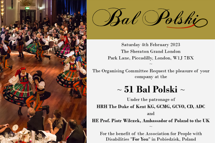 Już 4 lutego 2023 (sobota) odbedzie się niezwykle uroczysta 51. edycja Balu Polskiego, który odbędzie się w Hotelu Sheraton na Park Lane w Londynie. Bal jest niewątpliwie najbardziej prestiżowym wydarzeniem kulturalnym w życiu Polonii brytyjskiej, na które niektórzy czekają przez cały rok.