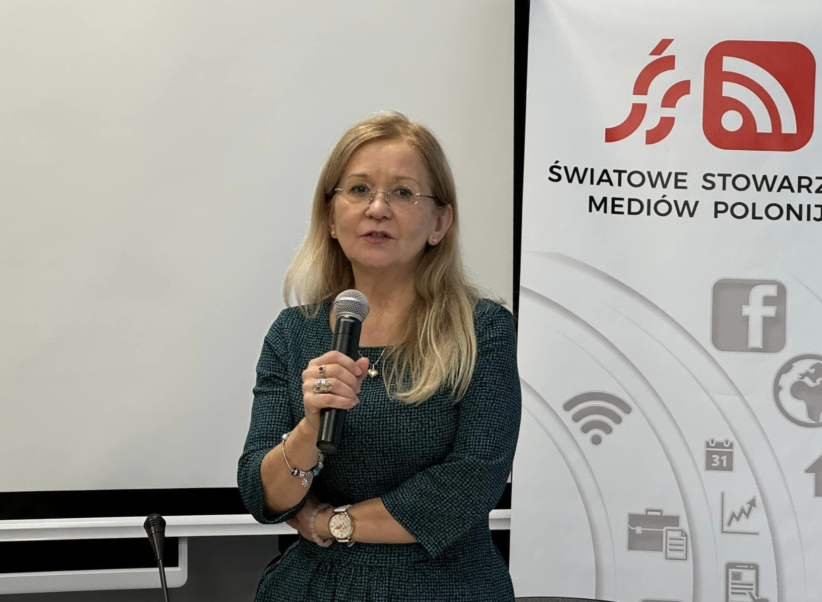 W następnej części spotkania głos zabrała Prezes Światowego Stowarzyszenia Mediów Polonijnych Teresa Sygnarek ze Szwecji, mówiąc: