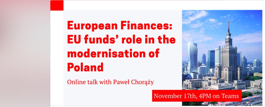 On November 17th you will have a unique chance to hear from the former Polish Deputy Minister for Investment and Development Paweł Chorąży on the role of EU funds in the modernisation of Poland.