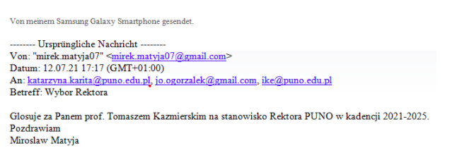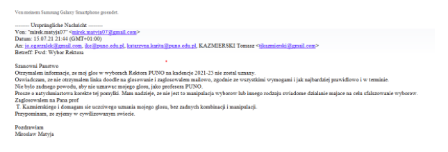 Przed ostatecznym zatwierdzeniem prof. Kaźmierskiego przez Senat PUNO jako nowo wybranego rektora PUNO, próbowano unieważnić dwa glosy. Niestety jednym z nich był również mój głos.