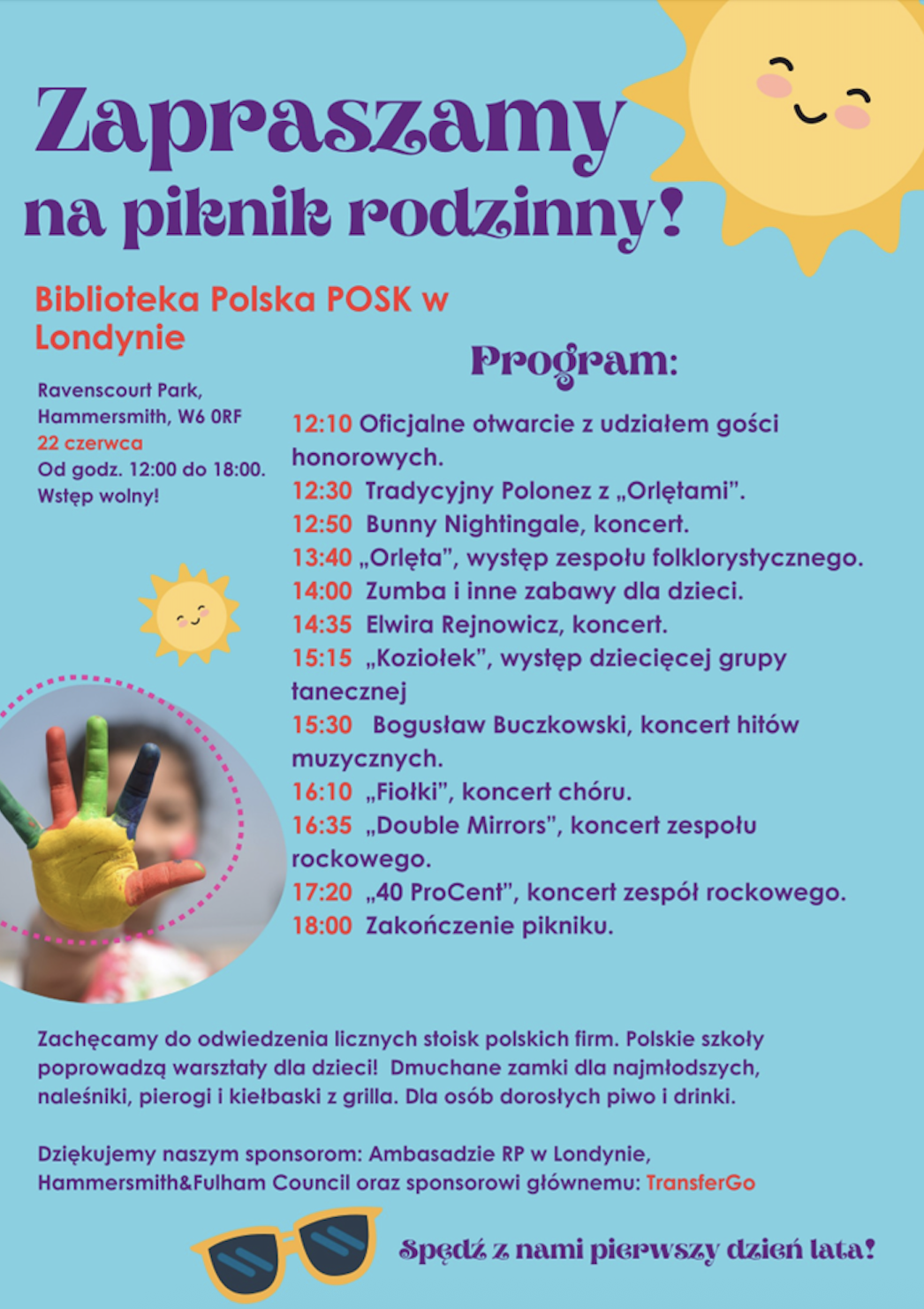 Zachęcamy wszystkich, którzy chcą promować swoją działalność w pięknym miejscu, jakim jest niezwykły Ravenscourt Park, o zgłaszanie swoich firm na adres: piknik@posk.org