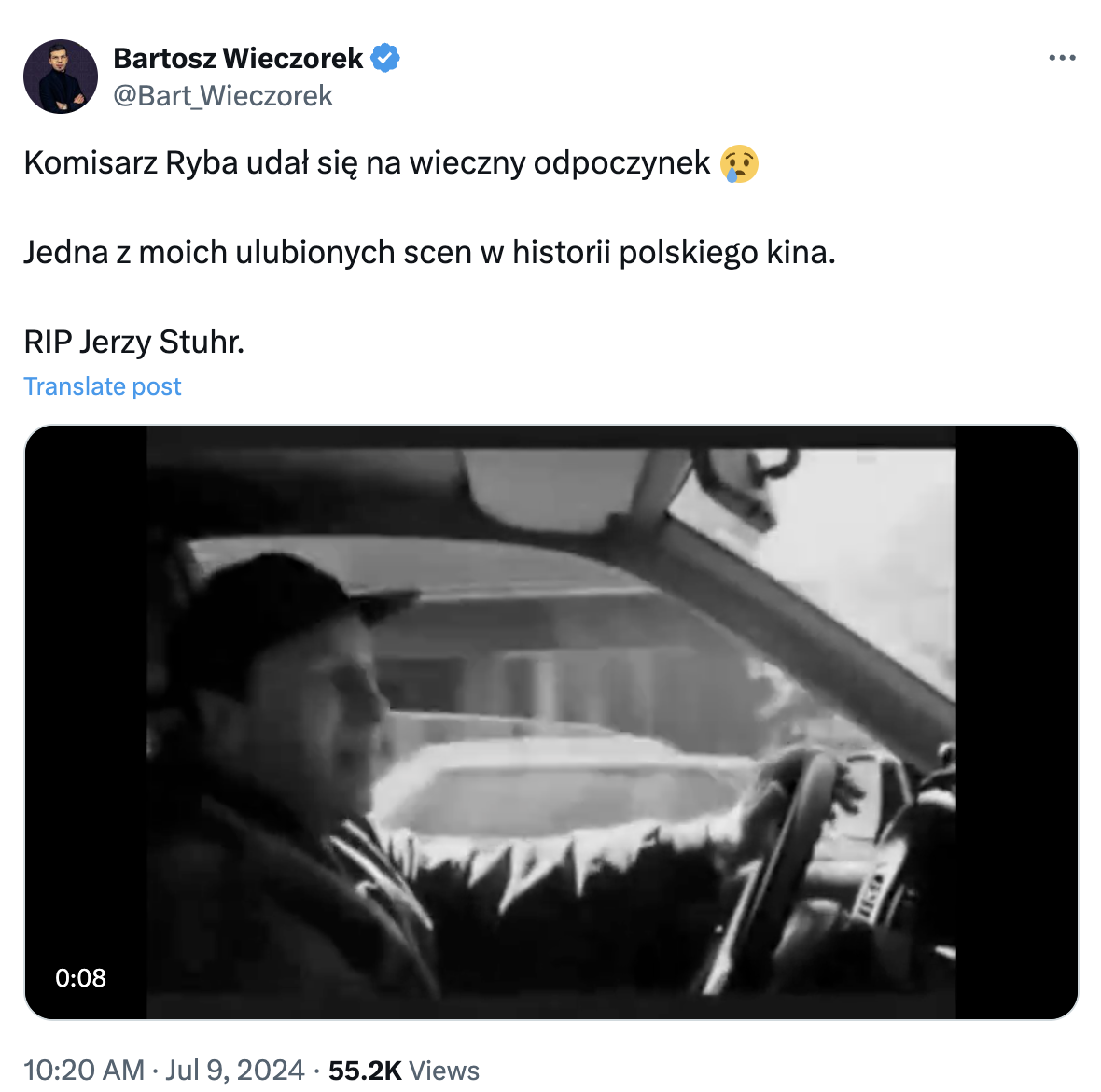 „We received this sad information today,” Barbara Kwiatkowska of the National Old Theater told the Polish Press Agency.
