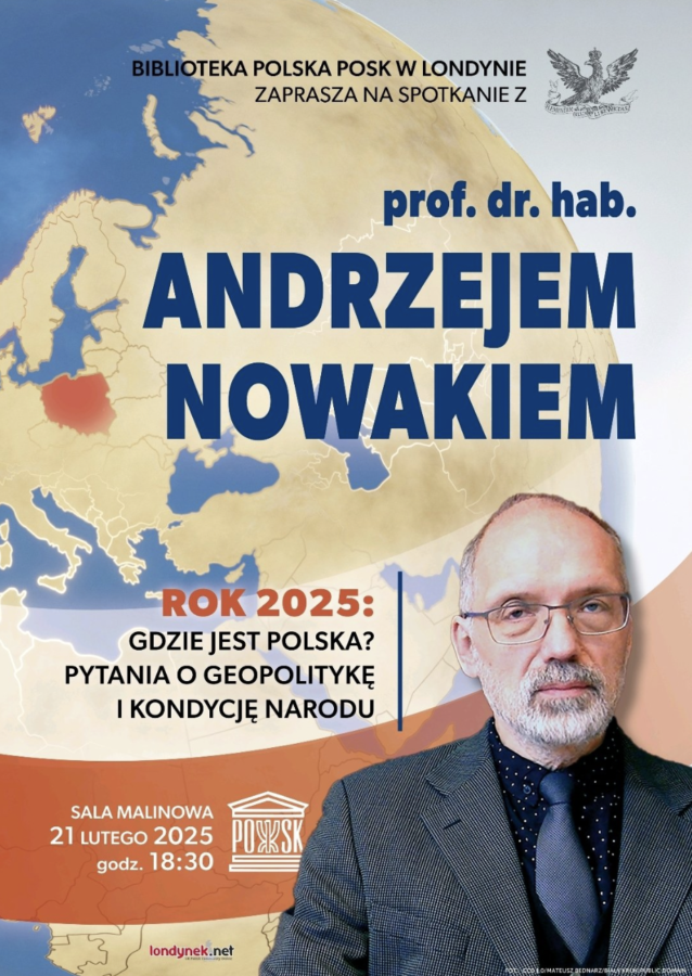 Biblioteka Polska POSK w Londynie serdecznie zaprasza na spotkanie z prof. dr. hab. Andrzejem Nowakiem.