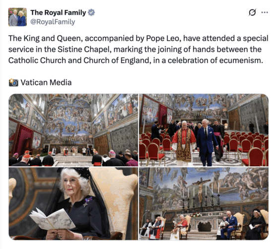 The joint prayer, led by Pope Leo XIV and the Anglican Archbishop of York, Stephen Cottrell, brought together the papal and royal choirs in a rare harmony of voices and traditions. The setting of Michelangelo’s frescoed masterpiece lent both grandeur and intimacy to a gesture rich in symbolism.