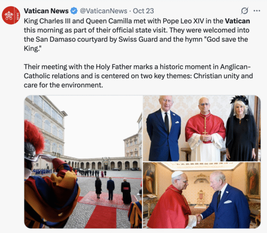Nearly five centuries have passed since Henry VIII’s dramatic break with Rome, when his defiance of papal authority reshaped the religious landscape of England. On this autumn morning, however, that centuries-old division seemed to fade, replaced by a shared call to care for the planet, a cause close to both the Bishop of Rome and the British monarch.