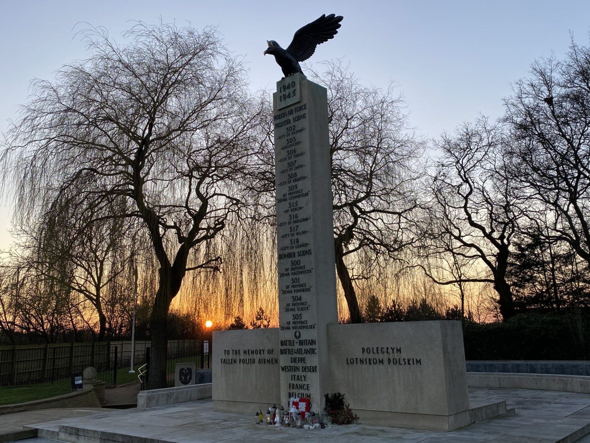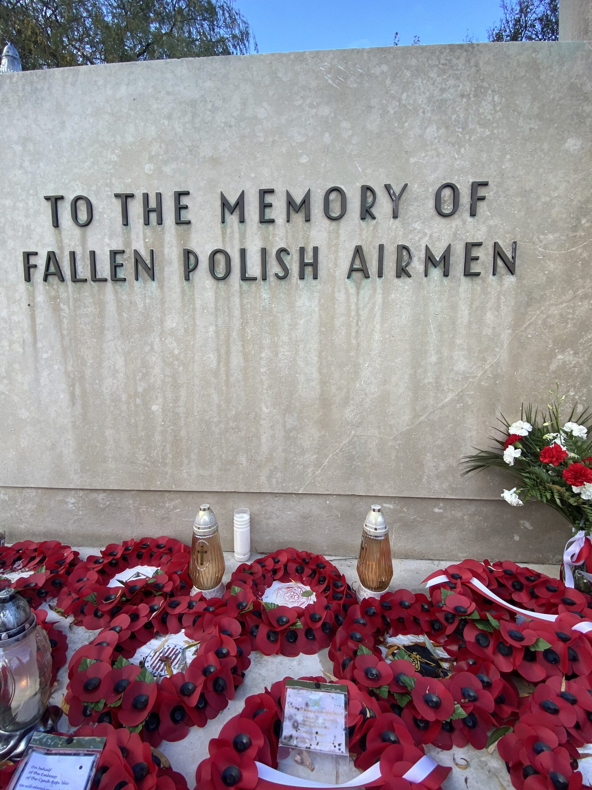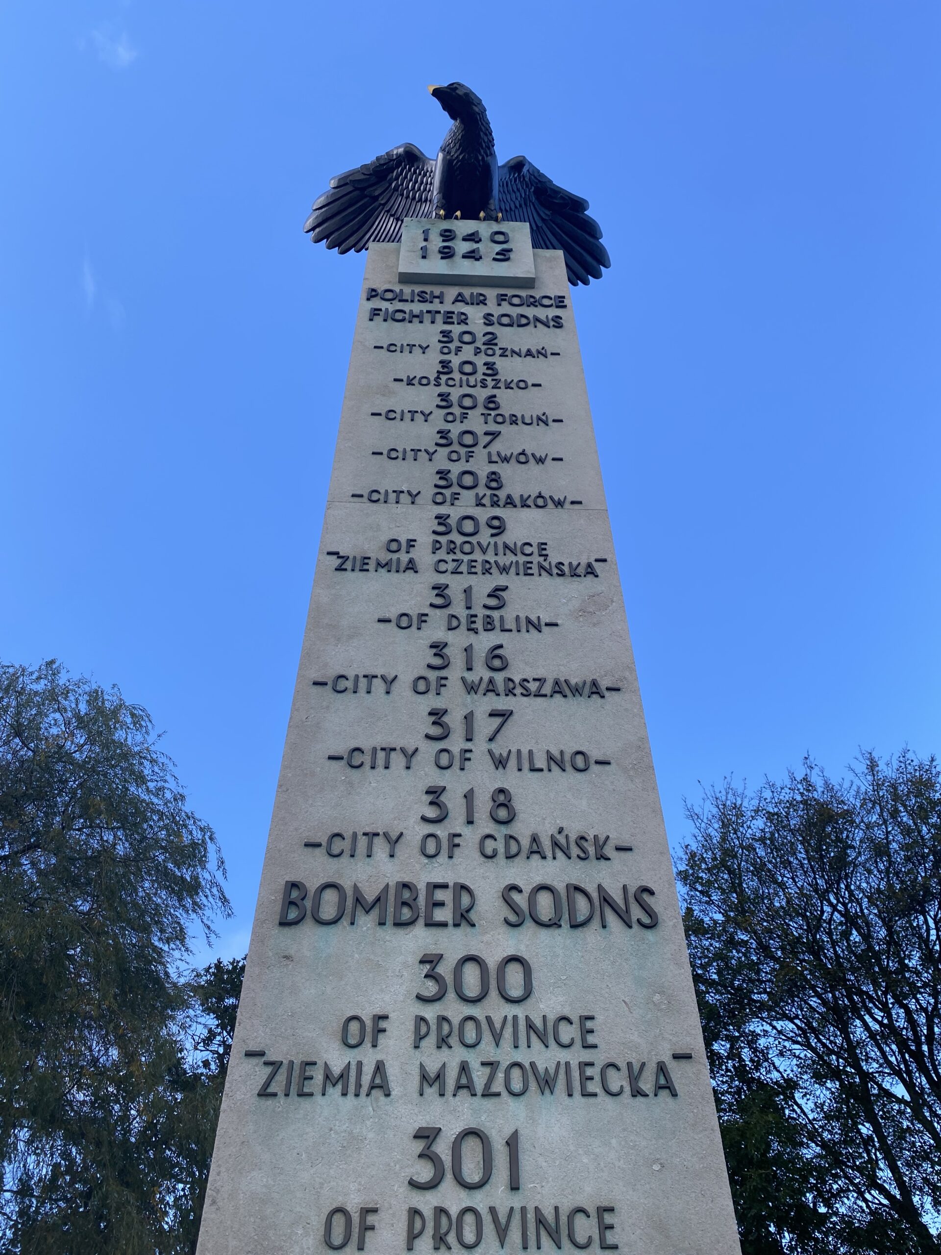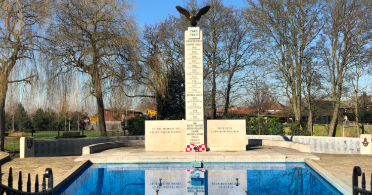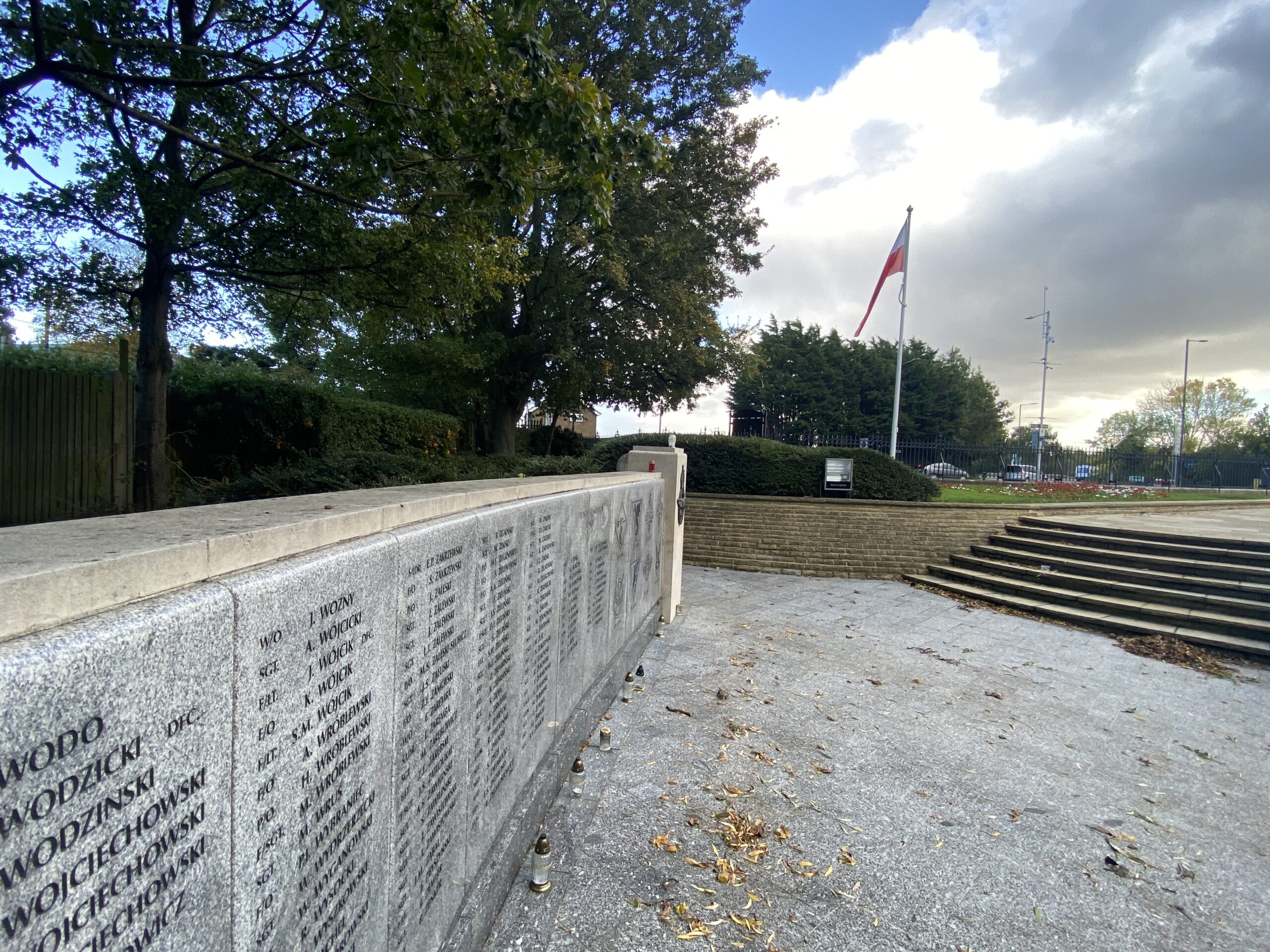The memorial is flanked by 2 granite walls engraved with 1877 names of Polish airmen who lost their lives ‘For Your Freedom and Ours’.