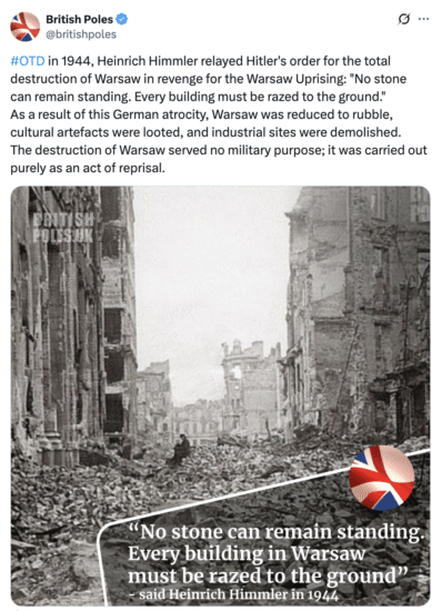 When the Warsaw Uprising was crushed, Heinrich Himmler demanded the complete destruction of Warsaw as revenge for the Polish revolt.
