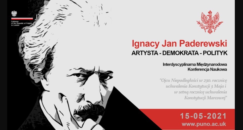 Polski Uniwersytet na Obczyźnie PUNO zaprasza studentów, doktorantów, pracowników naukowych oraz wszystkie osoby zainteresowane do udziału w Międzynarodowej Konferencji pt. „Ignacy Jan Paderewski. Artysta, Demokrata, Polityk. Ojcu Niepodległości w setną rocznicę uchwalenia Konstytucji Marcowej”, która odbędzie się w Londynie.