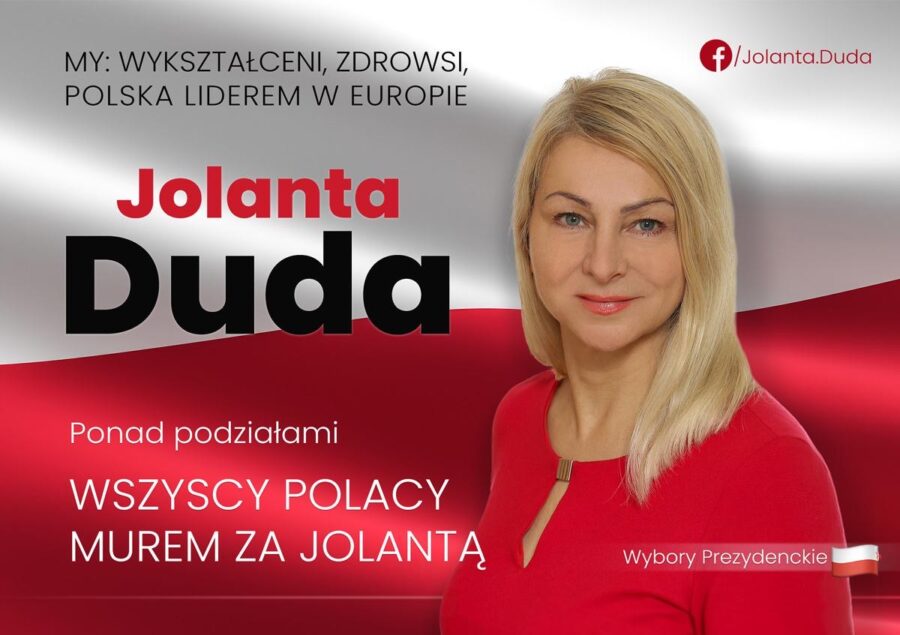 Jolanta Duda jest gotowa, by stanąć na czele Państwa jako Prezydent RP i służyć naszej Rzeczypospolitej Polskiej. Z bogatym doświadczeniem będzie godnie reprezentować i podnosić rangę Ojczyzny. Siła i mądrość – mówi – to zasady gwarantujące 100-procentowy sukces. Polska potrzebuje kogoś, kto jest ponad podziałami. Kogoś, kto jest świeży i pozytywnie nastawiony.