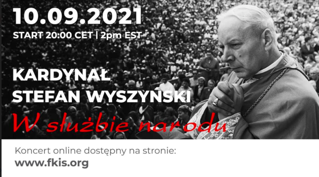 Dla uczczenia nadchodzącej beatyfikacji kardynała Stefana Wyszyńskiego, Instytut Dziedzictwa Myśli Narodowej im. Romana Dmowskiego i Ignacego Paderewskiego, Instytut Stefana Kardynała Wyszyńskiego oraz Fundacja Kultury i Sztuki serdecznie zapraszają na koncert online: KARDYNAŁ STEFAN WYSZYŃSKI W SŁUŻBIE NARODU.