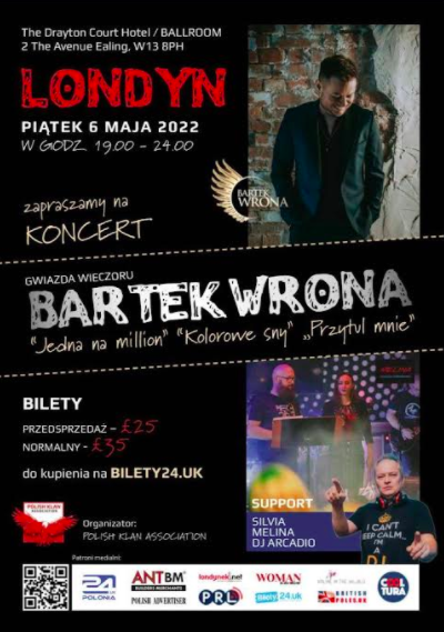 Polish Klan Association zaprasza gorąco na wspaniały koncert z udziałem Bartka Wrony, który specjalnie dla Was zaśpiewa swoje największe hity oraz piosenki z nowej płyty!