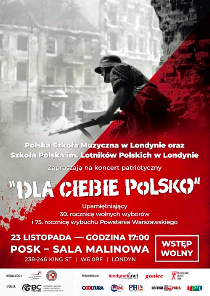 Koncert organizowany jest wspólnie ze Szkołą Polską im. Lotników Polskich w Londynie z okazji 30. rocznicy wolnych wyborów oraz 75. rocznicy wybuchu Powstania Warszawskiego.