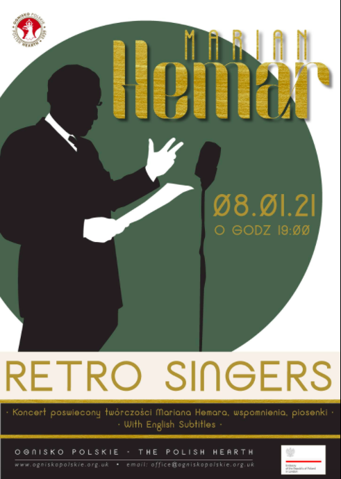 Zespół Retro Singers zaprasza 8 stycznia do obejrzenia swojego koncertu online, poświęconego twórczości wybitnego polskiego poety i kabareciarza Mariana Hemara.
