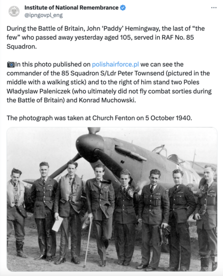 Winston Churchill referred to the Battle of England airmen in his famous speech, paying tribute to RAF pilots, including many Poles.