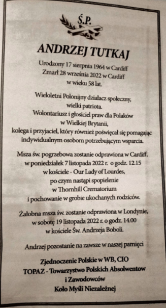 Andrzej worked exhaustively helping the Polish homeless in central London and ran Tutkaj News – an extremely popular Polish news portal, for more than a decade. He was also an activist in the Pro-Life movement.