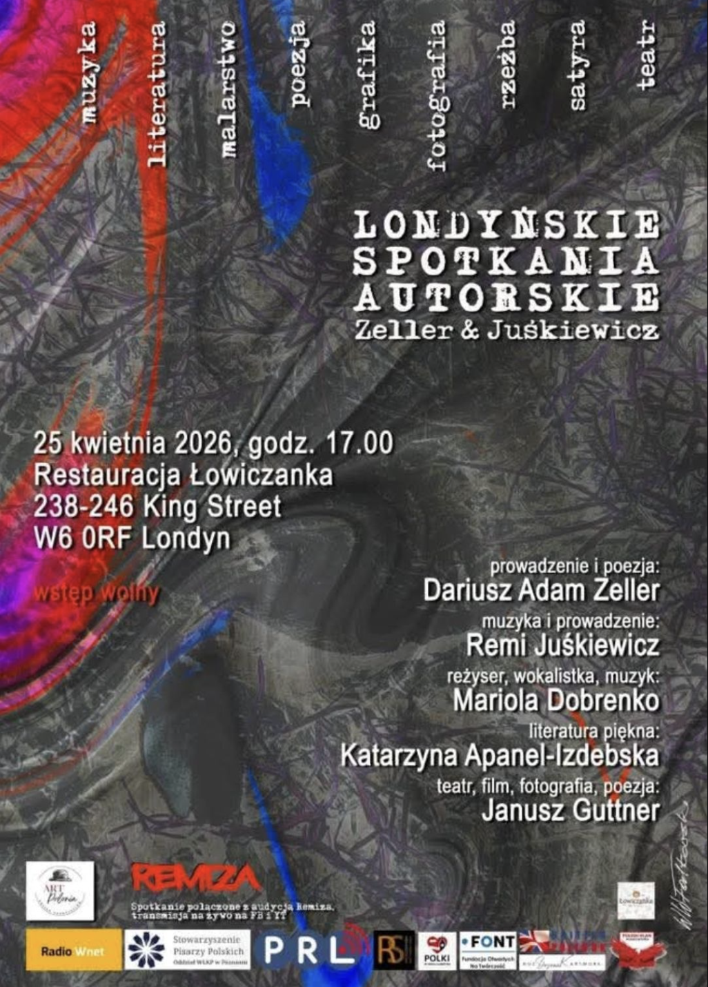 Dariusz Zeller oraz Remi Juśkiewicz serdecznie zapraszają na kolejne Londyńskie Spotkania Autorskie. Tym razem spotkanie, które zwykle odbywało się w jednej z sal POSK-u, odbędzie się w restauracji „Łowiczanka”. Osoby zaskoczone zmianą miejsca informujemy, że spotkanie tradycyjnie będzie miało niezwykle ciekawy program.