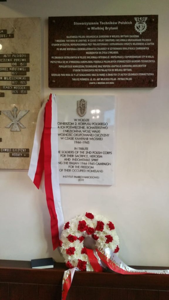 Uroczystość rozpoczęła się od Mszy świętej w kościele św. Andrzeja Boboli w Londynie. Następnie nastąpiło odsłonięcie tablicy memoratywnej upamiętniającej poświęcenie i bohaterstwo żołnierzy II Korpusu Polskiego. Dokonali tego wspólnie Prezes IPN Jarosław Szarek oraz polski Konsul Generalny Mateusz Stąsiek.