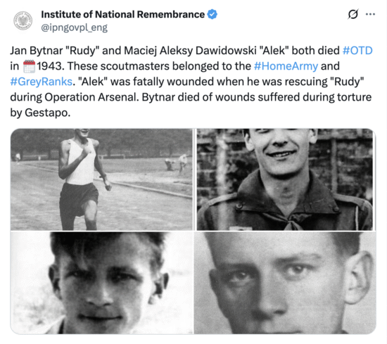 By early 1943, he was deputy commander of a sabotage and diversion platoon under Jan Bytnar “Rudy”. His final mission came in March: during the rescue of “Rudy” in the “Arsenal” operation, he was gravely wounded and died on 30 March 1943, aged just 22.