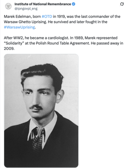 Marek Edelman remains one of the most compelling moral voices to emerge from the tragedy of the Second World War. One of the leaders of the Warsaw Ghetto Uprising and later a distinguished cardiologist, Edelman spoke with unusual clarity about both the horrors of the Holocaust and the complex realities of Polish–Jewish relations under German Nazi occupation.
