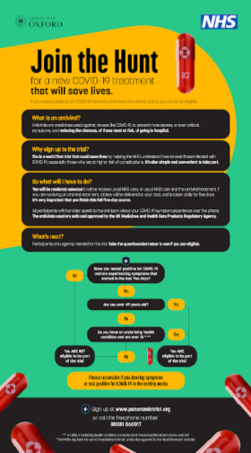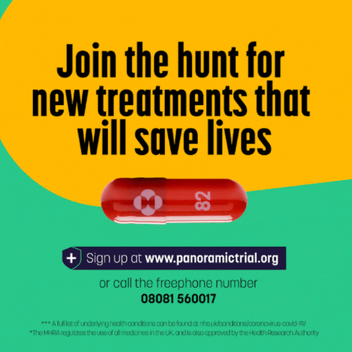 Rząd i wiodące organizacje charytatywne, w tym Kidney Care UK, Cystic Fibrosis Trust, Diabetes UK i British Liver Trust, wzywają ochotników do zgłoszenia się do badania PANORAMIC, do których potrzeba jeszcze przynajmniej 6000 uczestników. Badanie ma na celu umożliwienie doświadczonym naukowcom lepszego zrozumienia, w jaki sposób wdrożyć leki antywirusowe przeciwko COVID-19 w ramach systemu NHS w dalszej części roku – w tym również to, kto odniósłby największe korzyści z tej najnowocześniejszej terapii.