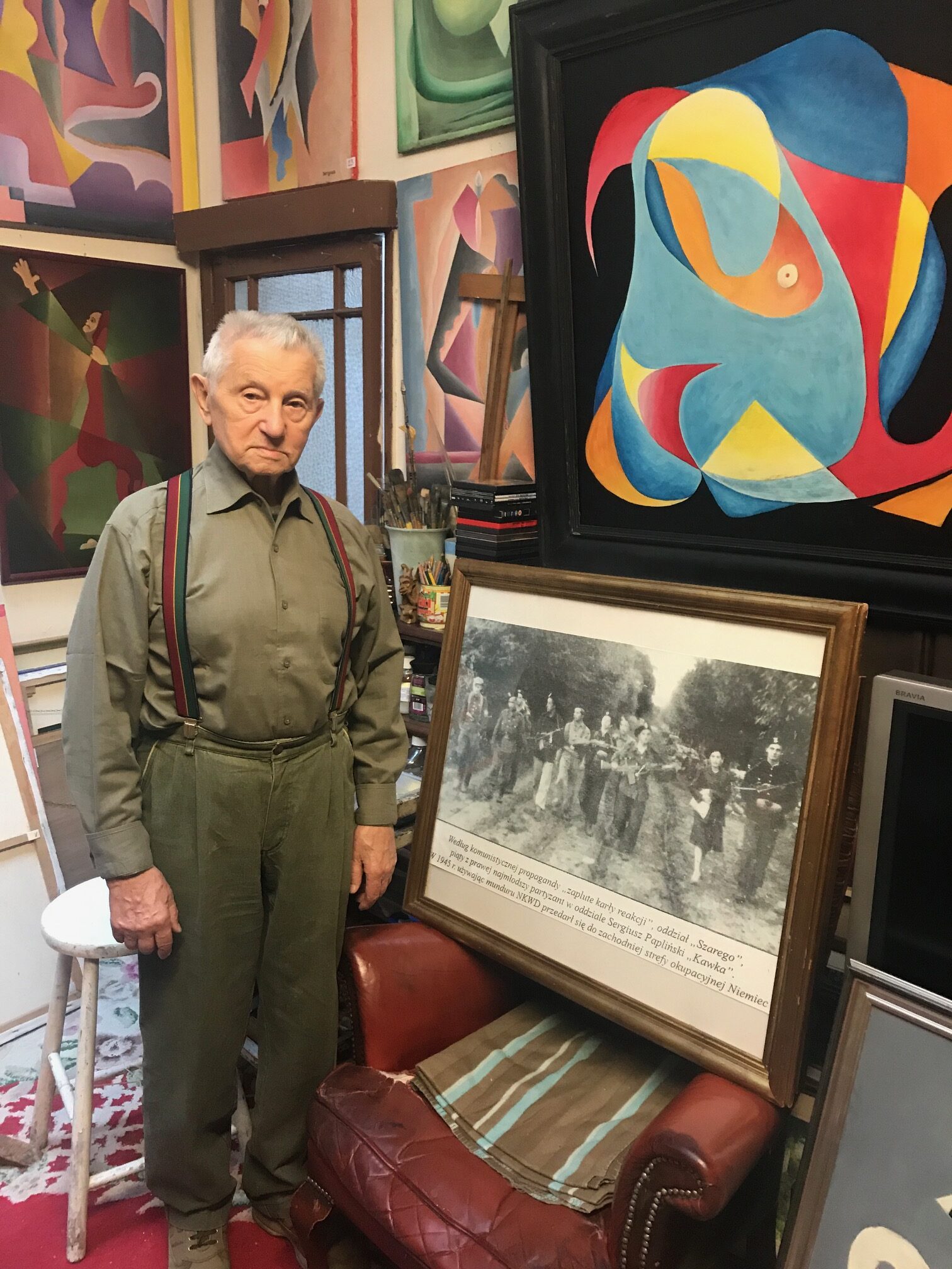 Sergiusz w swojej pracowni, obok pamiątkowe zdjęcie z partyzantki