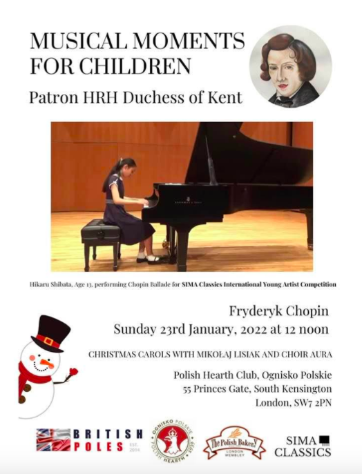 Ognisko Polskie – The Polish Hearth Club invites all children and parents to the Musical Moments for Children on January 23 2022 (Sunday).