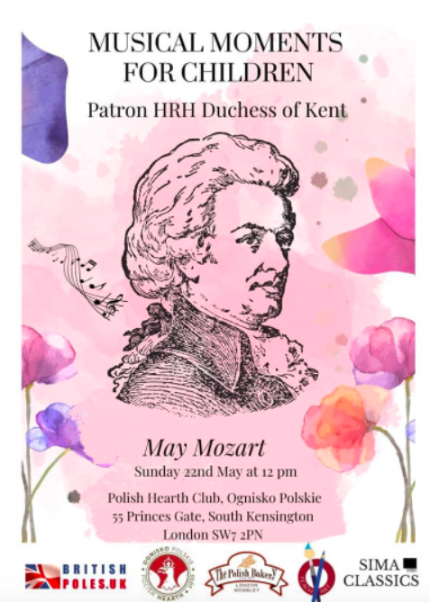 Ognisko Polskie – The Polish Hearth Club invites all children and parents to the Musical Moments for Children on May 22nd 2022 (Sunday). The event will be “May Mozart”.