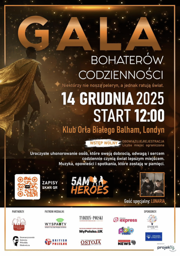 14 grudnia 2025 roku w Klubie Orła Białego w Londynie odbędzie się wydarzenie, które już dziś porusza serca Polonii- Gala Bohaterów Codzienności.
