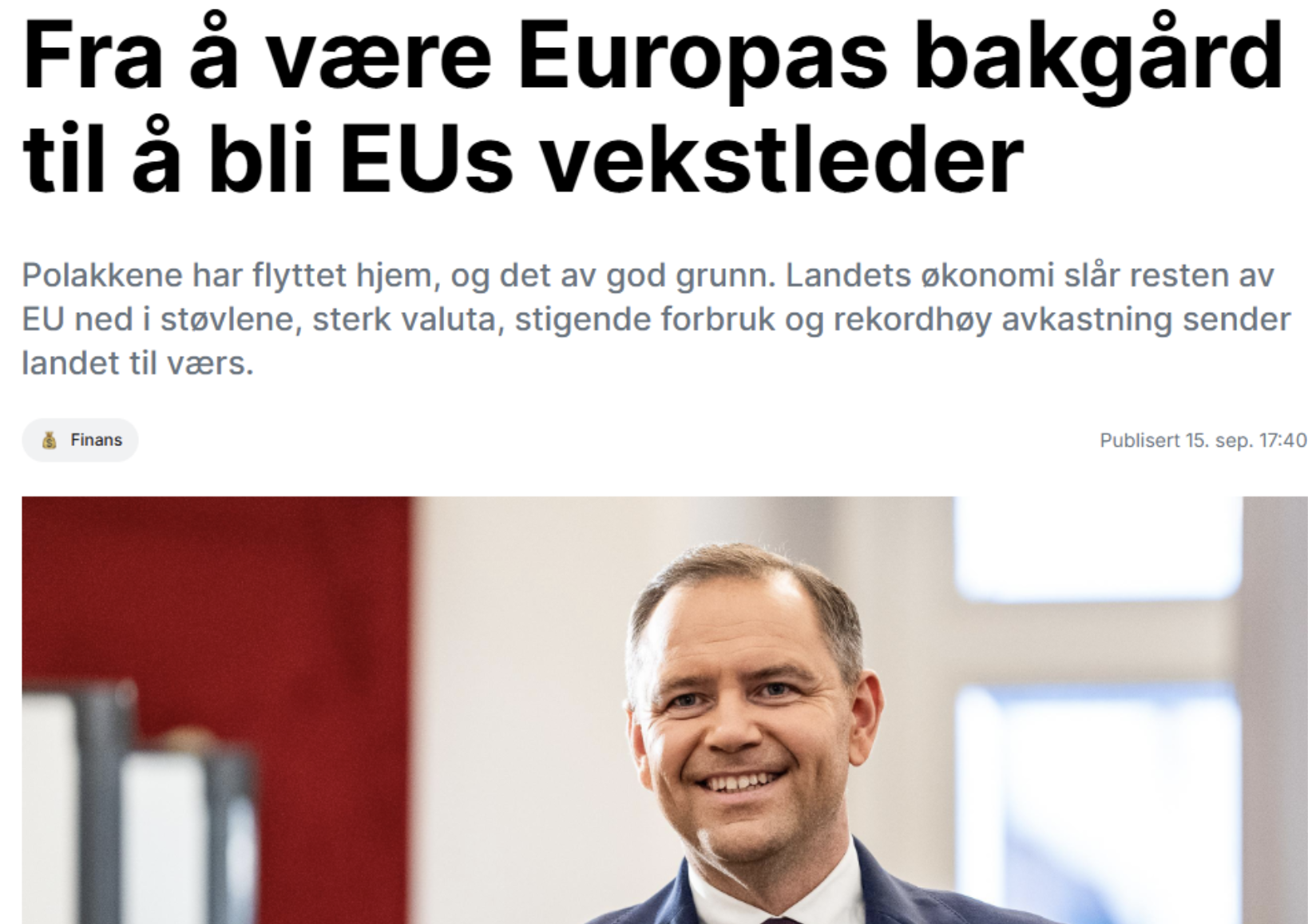 In its Tuesday edition, the Norwegian daily Finansavisen observed that Poland, once trailing at the bottom of the EU league, has within a few years emerged as a leader of the European economy. Yet this success, the paper predicts, could spell difficulties for countries that only recently were the main destinations for Polish emigrants.