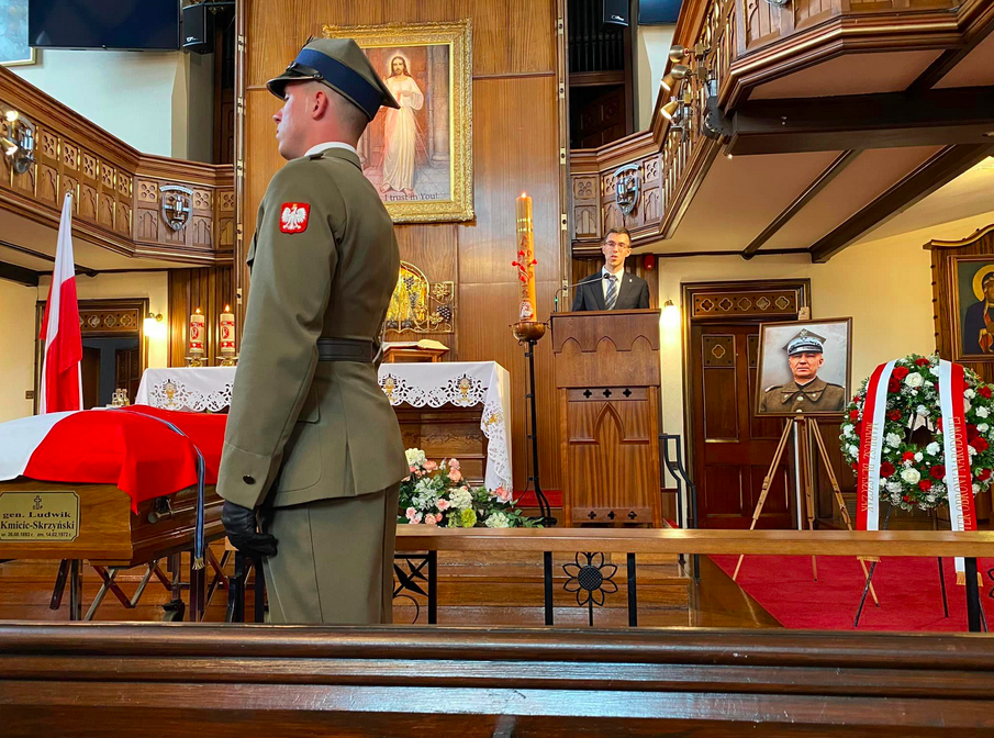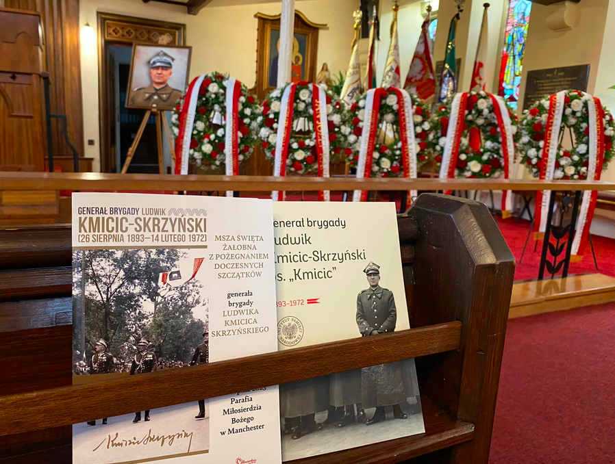 Doczesne szczątki gen. bryg. Ludwika Kmicica-Skrzyńskiego zostały ekshumowane w sierpniu 2023 r. We wtorek 22 sierpnia mieliśmy zaszczyt wziąć udział w Pożegnaniu śp. Generała Ludwika Kmicica-Skrzyńskiego w Kościele Miłosierdzia Bożego w Manchesterze, przed przewiezieniem ich samolotem wojskowym do Polski.