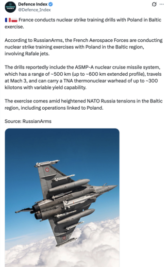 These exercises are expected to take place on NATO’s eastern flank, particularly over the Baltic region and northern Poland. In such scenarios, Polish aircraft would identify and track targets, while French forces equipped with nuclear-capable systems would simulate strike operations.