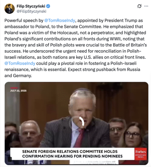 A staunch conservative with well-known pro-Israel views, Rose struck a conciliatory tone during the hearing. He stated clearly that he intends to work impartially with all political actors in Poland, regardless of party affiliation. He also touched on the sensitive subject of Polish-Israeli relations, asserting that Israel must acknowledge Poland’s historical experience as a victim of the Holocaust. Rose pledged to support efforts aimed at restoring diplomatic trust between the two nations.