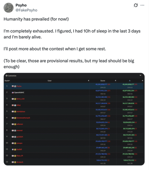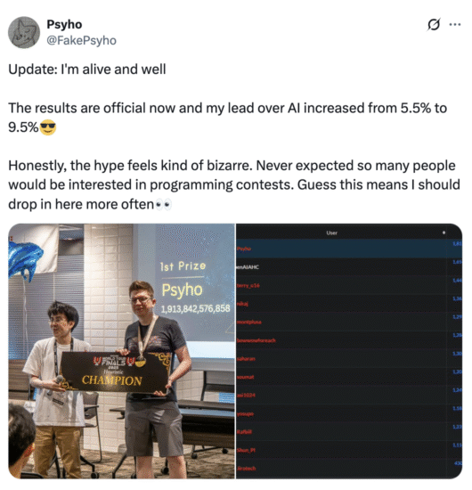 In an era increasingly defined by debates over AI’s role in work, society, and education, Dębiak’s win is a powerful reminder: when brilliance, intuition, and unpredictability are at stake, human intelligence still holds the edge.