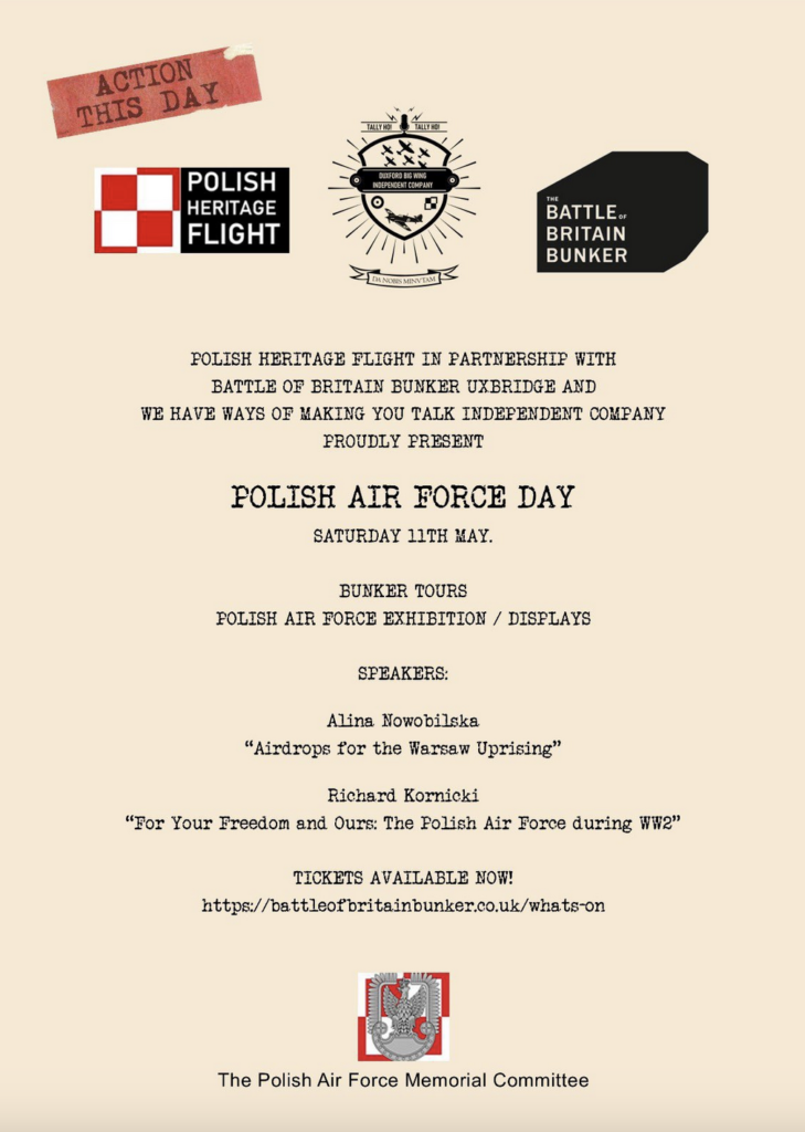 The Polish Air Force Day is organised by the Polish Heritage Flight in partnership with the Battle of Britain Bunker Uxbridge and the independent company We Have Ways of Making You Talk with support from the Polish Cultural Institute in London.