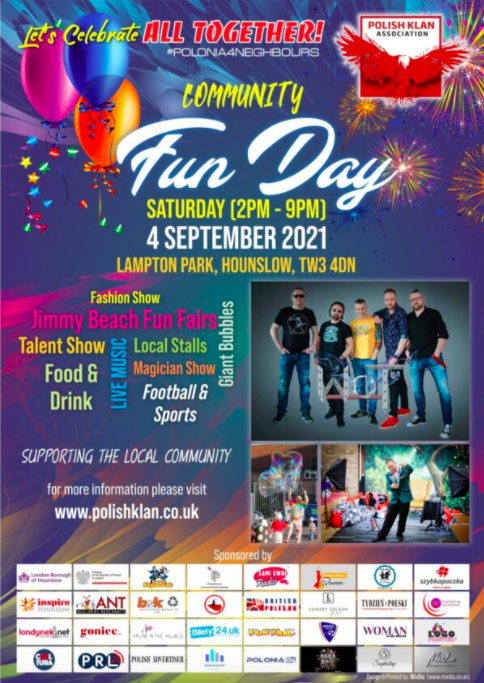 Po wielu miesiącach zakazów i obostrzeń związanych z pandemią Polskie Stowarzyszenie Klan, działające w południowo-zachodniej części Londynu zaprasza serdecznie wszystkich mieszkańców Hounslow i okolic na pełen atrakcji festyn All Together – Community Fun Day. W tym roku organizatorzy postawili na integrację różnych lokalnych społeczności, które bardzo licznie zamieszkują gminę Hounslow. Festyn, który odbędzie się w sobotę 4 września między godz. od 14.00 do 21.00 w samym sercu Lampton Parku (TW3 4DN), będzie wspaniałą okazją do bezpośrednich spotkań na świeżym powietrzu oraz celebrowania zakończenia wakacji i rozpoczęcia nowego roku szkolnego.
