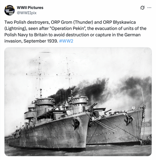 The land battle at Narvik was closely supported by the British Royal Navy—among its warships were three Polish destroyers: ORP Grom, Burza, and Błyskawica, which had been evacuated to Britain in the final days of August 1939.