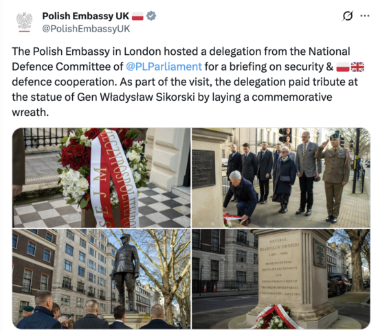The visit also carried a symbolic dimension. Together with a military delegation, the Polish parliamentarians laid a wreath at the memorial to Władysław Sikorski, paying tribute to a figure who embodies the shared wartime history and enduring bonds between Poland and Britain.
