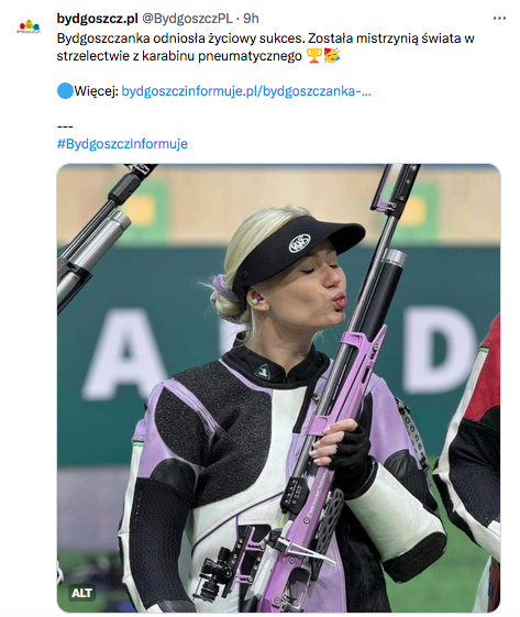 Polka mistrzynią świata w strzelectwie z karabinu pneumatycznego