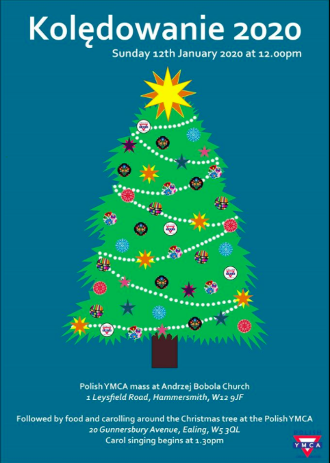 Traditional annual YMCA mass will take place at Sw Andrzeja Boboli church on Sunday 12th January at 12:00, followed by food and carolling around the Christmas tree at Polish YMCA (20 Gunnersbury Ave. W5 3QL).